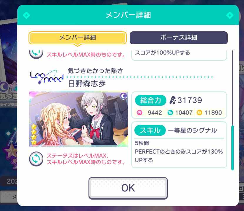 ミクさんはどの判定でも120%増加して志歩はパーフェクトのみ130%アップ